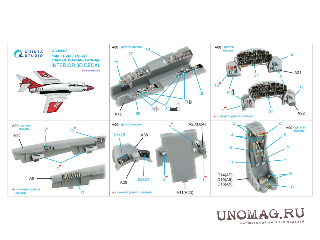 3D Декаль интерьера кабины TF-9J/F9F-8T Twin Cougar/Twogar (Kitty Hawk)