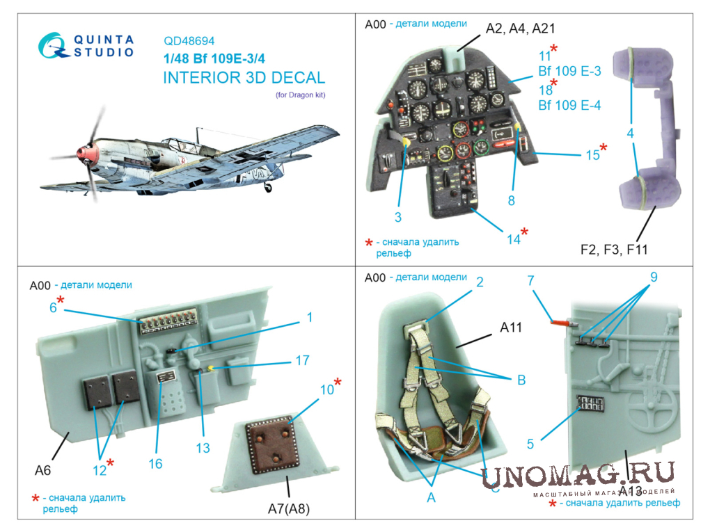 3D Декаль интерьера кабины Bf 109E-3/E-4 (Dragon)