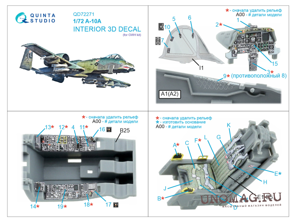 3D Декаль интерьера кабины A-10A Thunderbolt II (GWH)