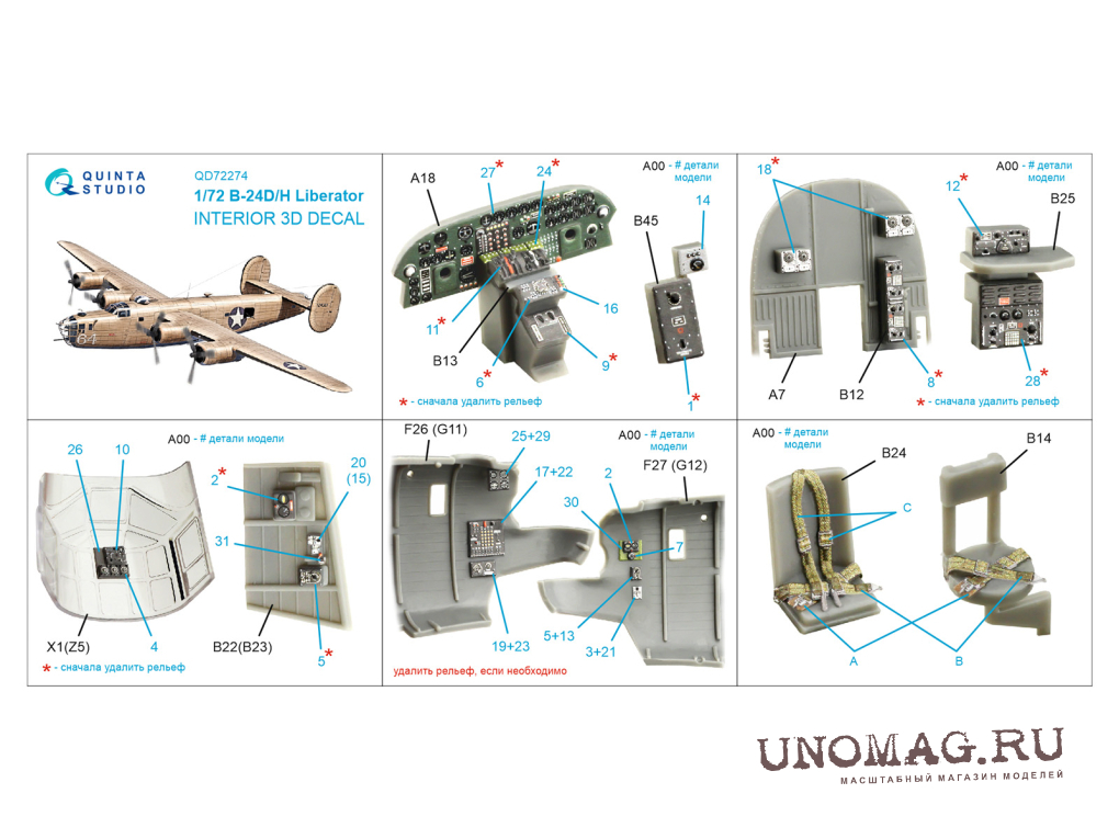 3D Декаль интерьера кабины B-24D/B-24H Liberator (Airfix)