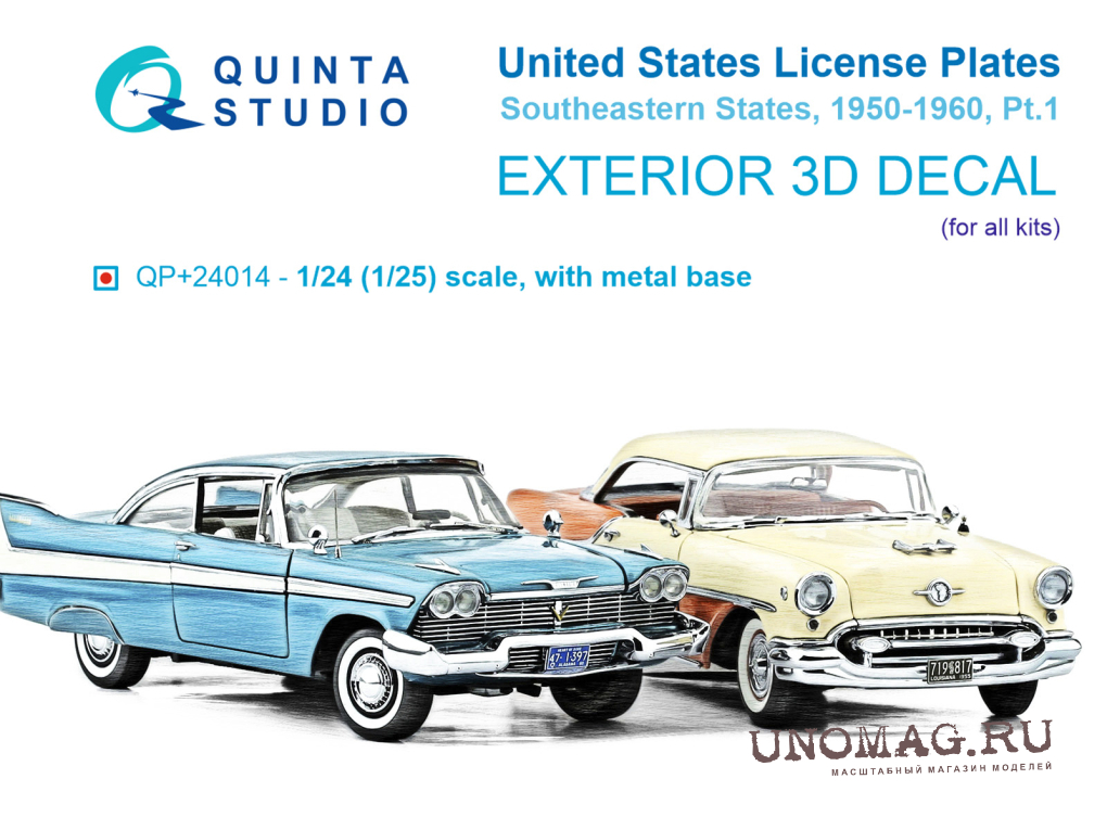 3D Декаль Автомобильные номера США, юго-восточные штаты, 1950-1960 (для всех моделей) (на метал. основании) ч1