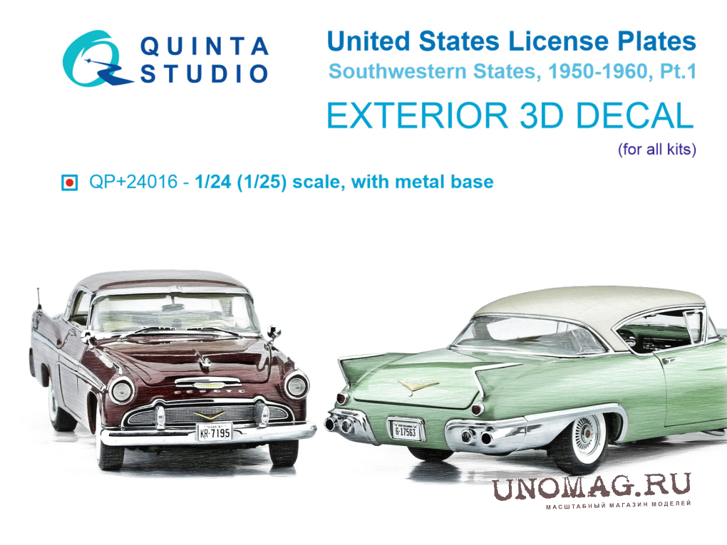 3D Декаль Автомобильные номера США, юго-западные штаты, 1950-1960 (для всех моделей) (на метал. основании), ч1