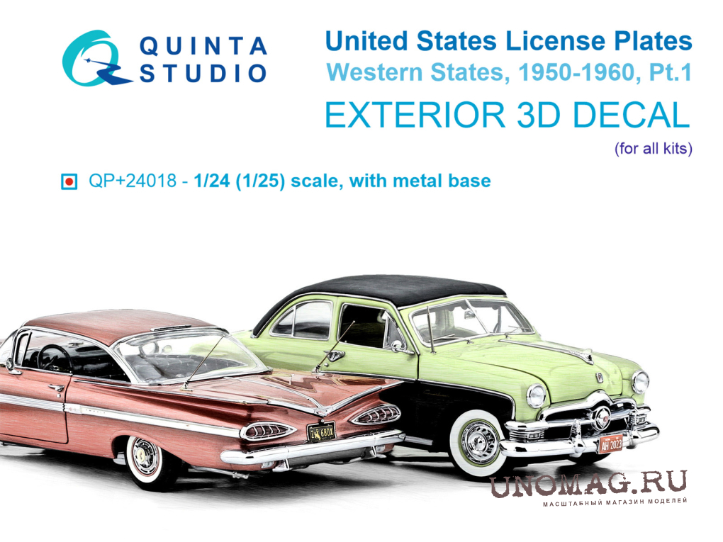 3D Декаль Автомобильные номера США, западные штаты, 1950-1960 (для всех моделей) (на метал. основании), часть1