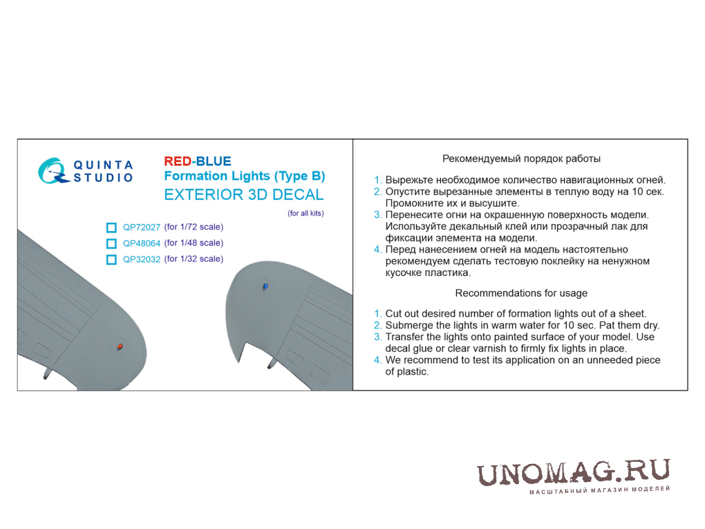 3D Декаль Навигационные Огни (Тип B), Красный+Синий (для всех моделей)