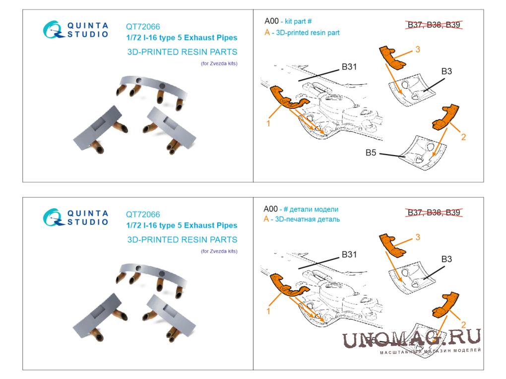 Выхлопные патрубки для И-16 тип 5 (Звезда)