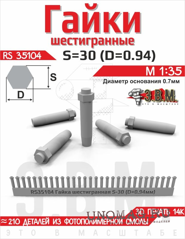 Гайка шестигранная S=30 (D=0,94). Посадочный D=0.7 мм