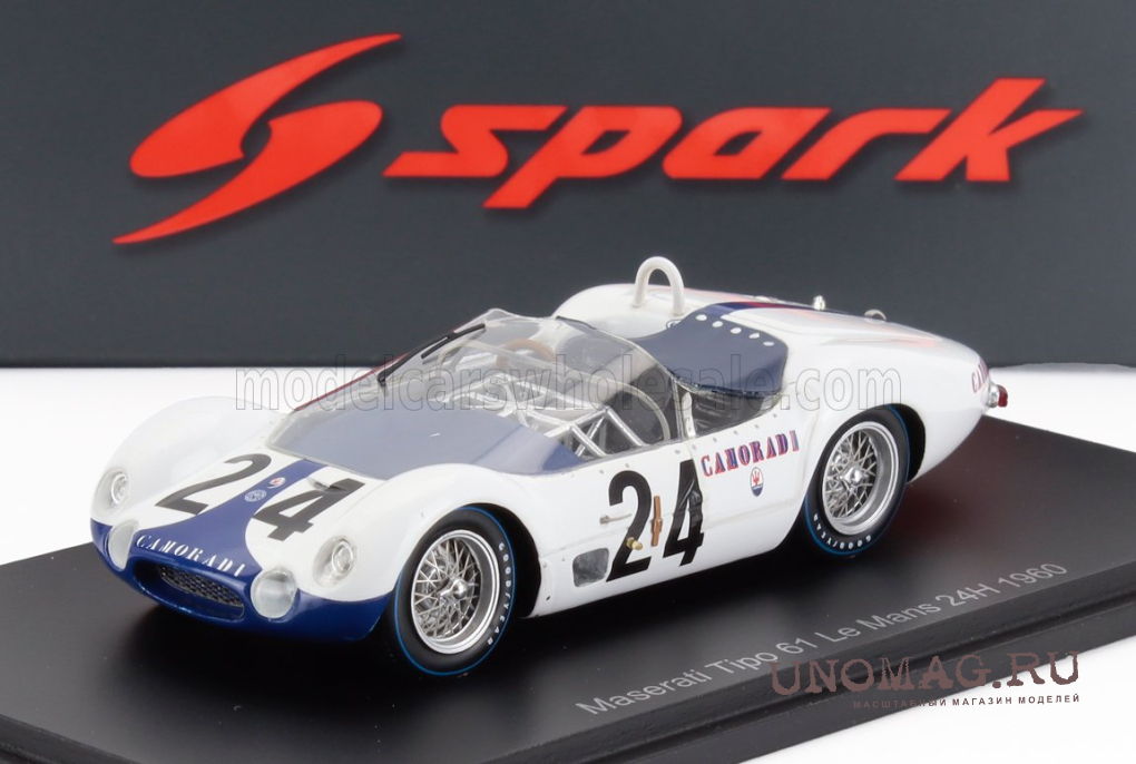 MASERATI Tipo 61 2.9l S4 Spider Team Camoradi Usa №24 24h Le Mans (1960) Masten Gregory - Chuck Daigh, White Blue