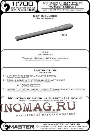 IJN, стволы 46 см / 45 (18,1 дюйма) Type 94 (9 шт.) - Yamato, Musashi