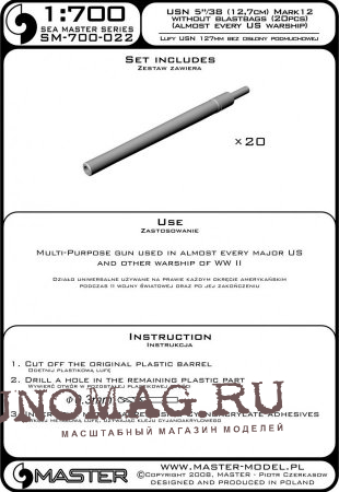 Стволы USN 5 дюймов / 38 (12,7 см) Mark 12 - для турелей без глушителей (20 шт.)