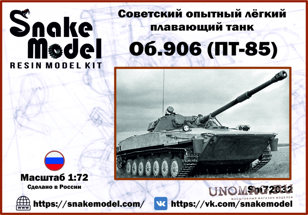 Сборная модель Советский опытный лёгкий плавающий танк об.906