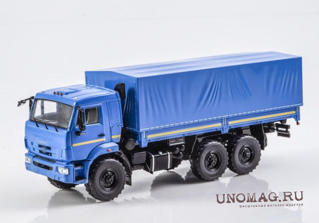 Камский грузовик 43118 рестайлинг бортовой с тентом, синий