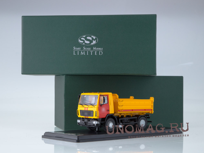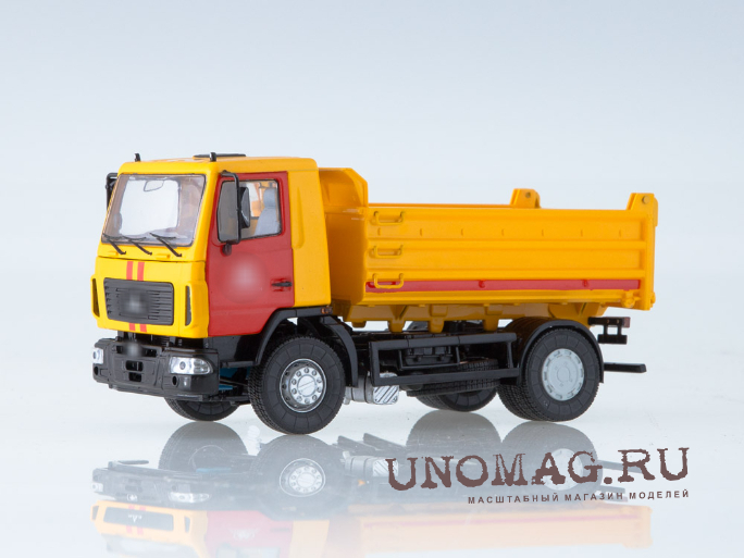 1:43 Минский 5551 самосвал поздняя кабина высокий кузов (1988), жёлто-оранжевый