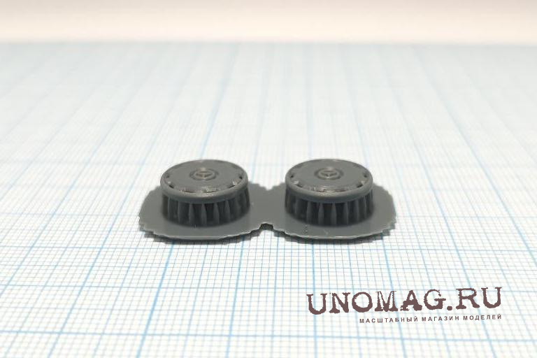 Комплект колпаков для грузовых автомобилей в масштабе 1/43. Перед установкой требуется окраска изделия. Для удобства окраски детали поставляются на поддержках