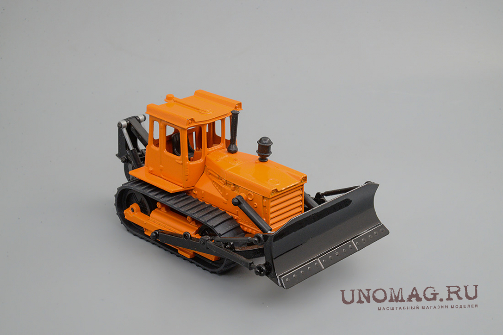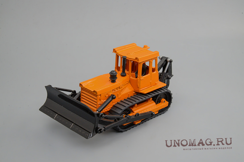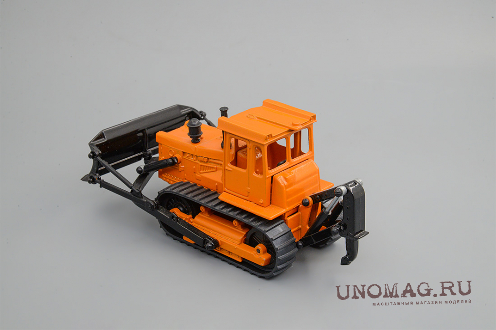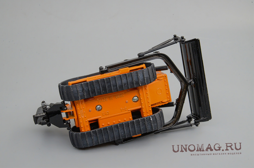1:43 Трактор Т-150 гусеничный с отвалом, желтый / белый