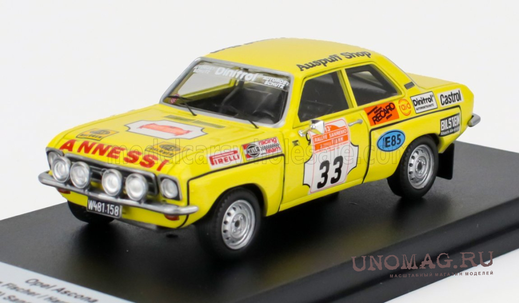 OPEL Ascona (night Version) №33 Winner Gr.2 Rally Sanremo (1975) Georg Fischer - Harald Gottlieb, Yellow