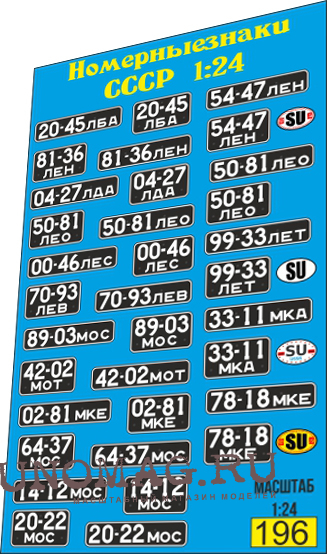 Набор декалей Номера СССР (черные, масштаб 1:24)