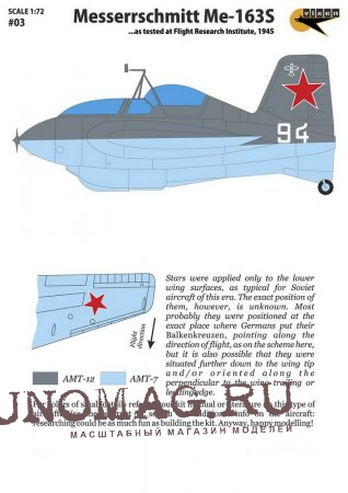 Декаль Messerrschmitt Me-163S. As tested at Flight Research Institute, 1945