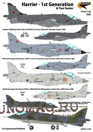Декаль Harrier - 1st Generations & Two Seater (UK, Thailand, India, USA, Spain - 6 Markings)