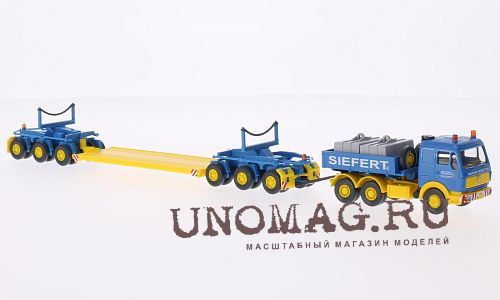 1:76 MERCEDES-BENZ Actros седельный тягач с низкорамной Платформой& погрузчик ЈCB 531 70, yellow